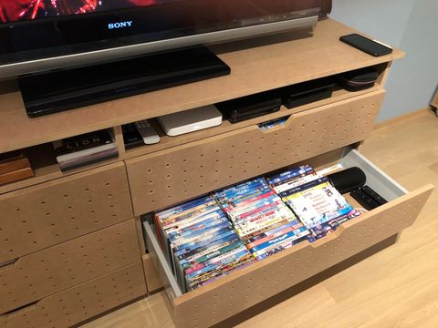 Nous avons également conçu un meuble TV, devant recevoir 300 DVD.