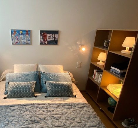 Meuble en bout de lit pour dégager l'espace bureau ou meuble à coté du lit pour isoler le couchage.