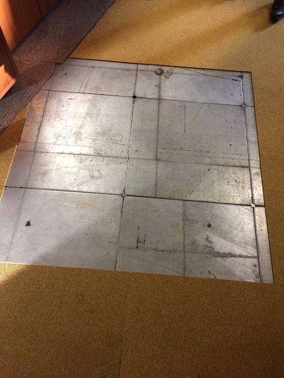 Des dalles techniques en métal poinçonnées sous la moquette, un charme inespéré qui nous ont donné du fil à retordre mais donnent une atmosphère unique au lieu.
